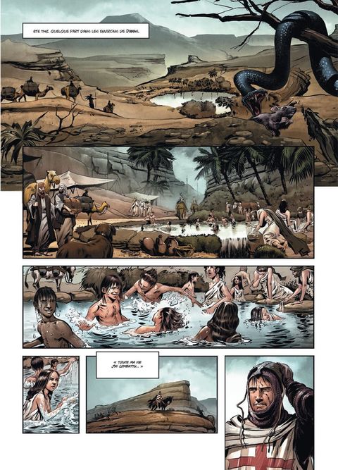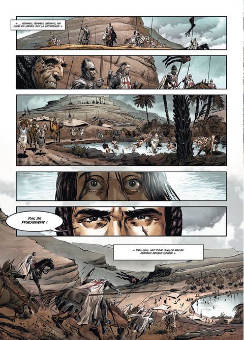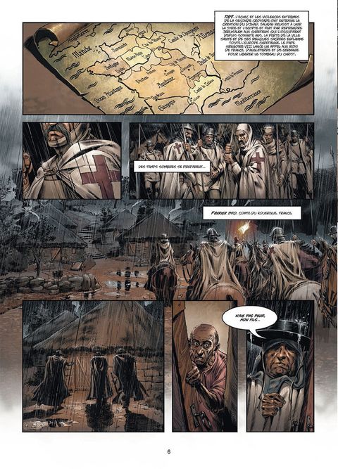 1190 - Comté du Rouergue en France. Bernard le pèlerin, un moine cruel au service du pape, sillonne le comté semant la terreur dans les villages qu'il traverse. Sa mission : constituer une armée de "croisés" afin de libérer le tombeau du christ à Jérusalem. Dans ce but, il rend visite au bailli Tancrède Delaridelle qui lui fait un accueil des plus hostiles. Mais le moine est un homme retors qui n'entend pas que l'on contrarie ses plans et il décide de former une mauvaise troupe de repris de justice pour forcer la main aux villageois. À quelques lieux de là, Adhémar de Montfort, vétéran des croisades, vit seul dans une extrême pauvreté. De son passé tourmenté au service du roi, il ne demeure que son immense épée accrochée au-dessus de l'âtre de sa cheminée. Rongé par la culpabilité de ses actes et des violences qu'il a commis au nom de Dieu, il vit reclus sur lui-même. Jusqu'au jour où un jeune paysan vient lui demander de l'aide pour sauver son village des violences du moine Bernard. D'abord réticent à l'idée de devenir un mercenaire, Adhémar accepte et reforme sa troupe de chiens de guerre avec ses anciens compagnons, tous encore hantés par les atrocités commises en Terre Sainte. En allant sauver ces villageois, Adhémar se voit offrir une ultime chance de rédemption...
