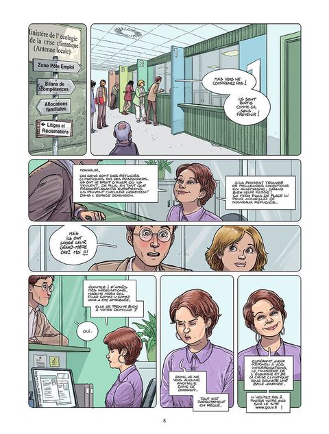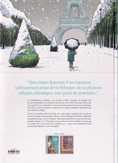 L'idée de l'histoire de cette BD est intéressante : la France accueille des réfugiés climatiques et les français en ont même l'obligation. Evidemment les avis divergent. Les personnages sont touchants. Les dessins se prêtent à l'histoire. Par contre, je suis assez déçu de la fin de l'histoire et des choix de vie des personnages. (...) Voir le commentaire