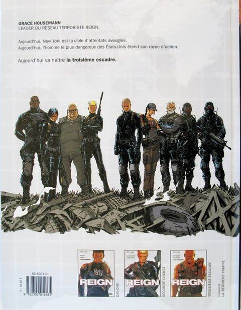 New York City. Durant l'allocution du président Ford, l'homme le plus dangereux des Etats-Unis vient de se dévoiler aux autorités... Grace Housemann,à la tête du réseau Reign. Le réseau terroriste qui ne cesse d'étendre sa domination sur une terre où les attentats se multiplient. Alors que les tensions montent, les pièces du puzzle s'organisent autour de l'agent démineur Adam Nexe, mystérieusement disparu, et Elisha Baelinski, en laquelle tous voient une pièce maîtresse de Reign. Mais derrière les faux-semblants, que prépare vraiment le réseau ? Et quelle est l'implication exacte du gouvernement dans la montée du groupuscule terroriste ? Les auteurs de la série ' Yiu - Premières Missions ' offrent un album sans faille, où l'intrigue révèle ses richesses et où la vie des personnages, à chaque instant, peut basculer irrémédiablement.