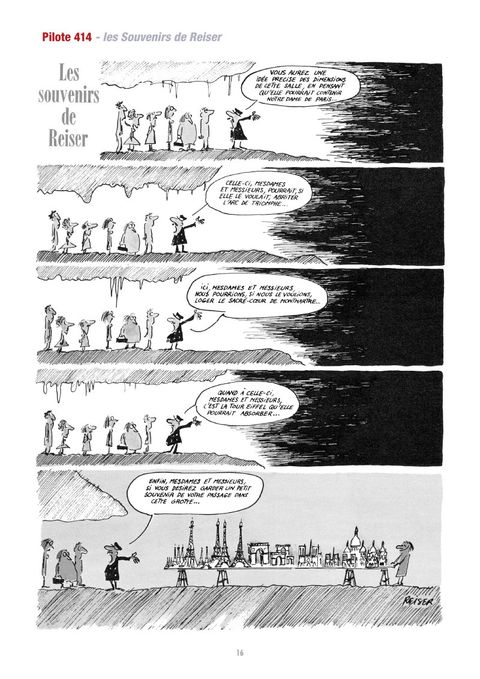 Reiser contribue depuis sa création en 1960 au journal "Hara-Kiri", mais le périodique dirigé avec panache par Choron n'étant pas une source de stabilité financière pour ses contributeurs, il se tourne vers un autre magazine. Ce sera "Pilote", alors dirigé par Goscinny. De 1967 à 1972, Reiser a réalisé 145 histoires complètes dans la rubrique Actualités, qui n'ont jusqu'à présent jamais été publiées en album. Entre les BD de Goscinny et de Gotlib, Reiser proposait des histoires courtes, destinées aussi à la jeunesse donc moins provocantes et trash, mais qui, comme à son habitude, pointaient les travers et absurdités de la société de son époque. Une compilation inédite !