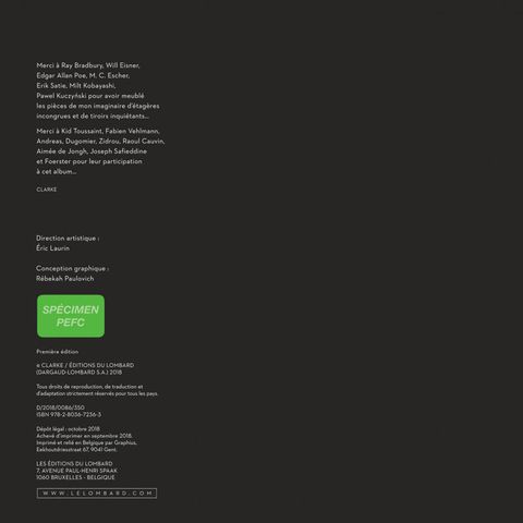 La femme qui n'existait qu'un jour sur deux, l'homme qui se précédait toujours lui-même ou celui qui n'avait pas le sens du toucher? Entre pur surréalisme belge, Quatrième Dimension et Idées noires Franquinisées, Clarke signe ici un livre unique en son genre, déclinant les concepts les plus inattendus en quatre fois quatre cases. Entre noir et blanc, déprime et rire absurde, l'auteur de Mélusine ouvre une lucarne à quatre carreaux pour éclairer différemment la grise réalité, et on en redemande !