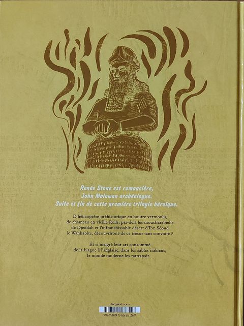 Dans ce dernier tome, la tablette au trésor, désormais déchiffrée, semble indiquer une fortune inestimable, caché à Ninive, l'ancienne capitale assyrienne, situé sur le site de l'actuel Mossoul, en Irak. A quel moment tous les personnages dispersés entre l'Ethiopie, l'Irak et la mer Caspienne vont-ils se retrouver pour s'accaparer le trésor du dernier roi assyrien Assurbanipal ? Le couple Malowan/Renée Stone se renforce et la touche romanesque s'invite plus forte que jamais pour conclure leurs aventures rocambolesques !