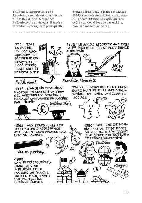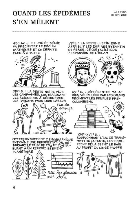 S'extraire du flot de l'actualité pour redonner à l'information sa densité, s'attacher aux courants profonds plutôt qu'aux remous de surface : c'est l'objectif que s'est fixé Le 1 à sa création en 2014. Rubrique phare du journal, les Repères de Jochen Gerner offrent chaque semaine aux lecteurs une douzaine de balises chronologiques ou statistiques pour mieux comprendre les grandes évolutions de notre monde. Avec un langage graphique qui lui est propre, un sens de la synthèse, une inventivité et un humour toujours bienvenus, le dessinateur aborde une large palette de sujets : société, politique, relations internationales, sciences... mais aussi histoire, art et littérature. De Wuhan à Kiev, ce recueil de 128 planches permet de remonter le cours de trois années tumultueuses. Non sans ménager quelques escales culturelles grâce, entre autres, aux biographies express de personnalités comme Frida Kahlo, Louise Michel ou Franz Kafka.