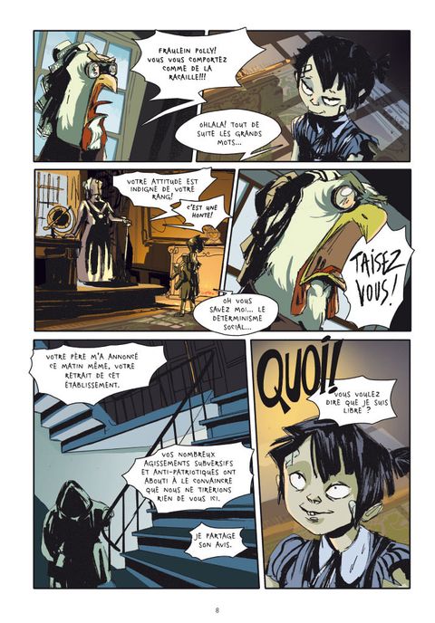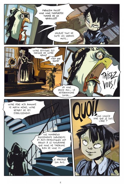 Dans un univers en partie animalier dont l'histoire semble avoir suivi un cours très semblable au nôtre, le soldat Otto Listig perd ses deux mains lors des combats qui sévissent dans les tranchées de la guerre de 14-18. Une dizaine d'années plus tard, à Retropolis, Otto s'est reconverti en entrepreneur de spectacles nocturnes et canailles, avec la complicité d'une sorte de cyclope féminin, Oedipa, qui l'aide à surmonter son handicap. Mais Otto ne se contente pas de frayer avec les milieux interlopes : secrètement, il n'hésite pas à vendre certaines de ses filles à un politicien très inquiétant, dont les ambitions sont apparemment sans limites. C'est dans ce contexte qu'il fait la connaissance de Polly, une héritière délurée au tempérament rebelle : elle vient d'échapper à la surveillance presque militaire du chaperon qui la tient sous sa coupe depuis dix ans. Signée par une dessinatrice dont c'est le premier album, voici une très surprenante fiction animalière, radicale, troublante aussi par les correspondances manifestes que, malgré son caractère étrange, elle entretient avec notre réalité.