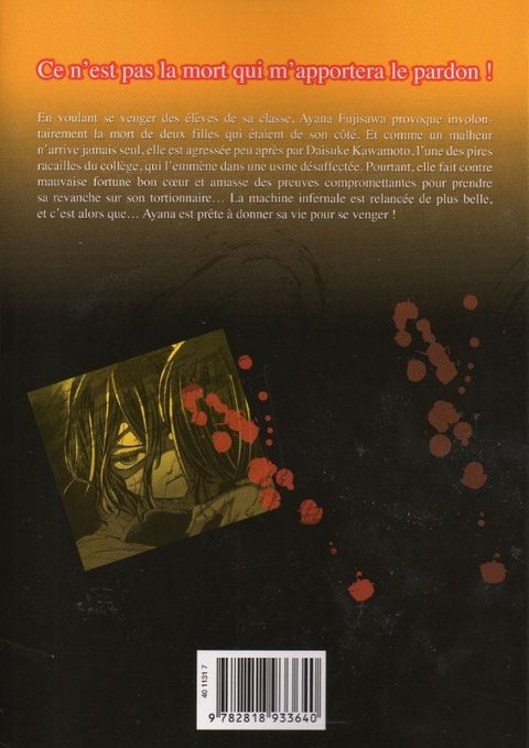 En voulant se venger des élèves de sa classe, Ayana Fujisawa provoque involontairement la mort de deux filles qui étaient de son côté. Et comme un malheur n'arrive jamais seul, elle est agressée peu après par Daisuke Kawamoto, l'une des pires racailles du collège, qui l'emmène dans une usine désaffectée. Pourtant, elle fait contre mauvaise fortune bon coeur et amasse des preuves compromettantes pour prendre sa revanche sur son tortionnaire. La machine infernale est relancée de plus belle, et c'est alors que. Ayana est prête à donner sa vie pour se venger !
