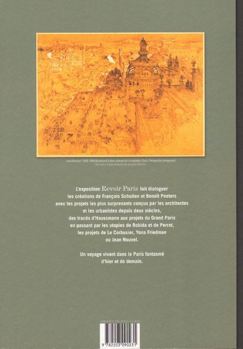 Le catalogue de la grande exposition à la Cité de l'Architecture et du Patrimoine. Du 19 novembre 2014 au 10 mars 2015, François Schuiten et Benoît Peeters investissent la Cité de l'Architecture et du Patrimoine à Paris pour livrer leur regard sur les visions de Paris depuis deux siècles : des tracés d'Haussmann aux projets du Grand Paris, en passant par les utopies de Robida et de Perret, ou les projets de Le Corbusier ou Jean Nouvel. En parallèle à ces documents historiques, l'exposition...