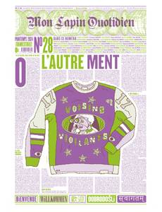 Welcome, 歡迎 , Willkommen, خۇش كەپسىز , Dobrodošli , स्वागतम्‌, Bienvenue ! À l'heure où les safe place se multiplient en même temps que les ventes d'armes explosent, dans un monde où les victoires idéologiques de l'extrême droite ne se comptent plus, Mon Lapin Quotidien pose une question : combien de start-up continueront d'éclore avant début de la fin ? Avant l'extinction totale de l'espèce ? Avant l'éternel recommencement ? Start = Close ? Close = Start ? « La guerre, c’est le massacre de gens qui ne se connaissent pas au profit de gens qui se connaissent et ne se massacrent pas » dixit Valéry cité par Humphrey Beauvoir en ouverture de ce numéro. Mon Lapin Quotidien prend le parti d'explorer les frontières du réel, de votre réel, de notre réel, d'un autre réel... Les zones et asiles de flous, les îlots et les ébats de la fameuse inquiétante étrangeté, les pas de côté et les glissements de terrain... Dans la joie et l'allégresse, MLQ malaxe, l'air de ne pas y toucher, des univers tout aussi singuliers que mouvants. L'ENTRE SOI VS LE HORS LÀ ? L'équipage fusionne avec de nouvelles rencontres et errances graphico-littéraires : Gorge Bataille, Rim Battal, Anna Carlier, Guillaume Chauchat, Motohiro Hayakawa, Antony Huchette, Lisa Mouchet, Afulodidim Nikefolosi, Lucile Ourvouai, Chloé Poizat, Iris Pouy... L'équipage au complet : Juliette ALLAUZEN, François AYROLES, Luna BARUTA, Gorge BATAILLE, Martes BATHORI, Rim BATTAL, Thomas BAUMGARTNER, Humphrey BEAUVOIR, Jackie BERROYER, Stéphane BLANQUET, Isabelle BOINOT, BONNEFRITE, Denis BOURDAUD, Antoine BOUTE, Anna CARLIER, Brice CATHERIN, Agnès DE CAYEUX, Ines CHAQOR, Guillaume CHAUCHAT, Jean-Luc COUDRAY, Pablo CUECO, Fanny DALLE-RIVE, Sophie DUTERTRE, Quentin FAUCOMPRÉ, Julien FAVRE, Fred FIVAZ, Jochen GERNER, Motohiro HAYAKAWA, Hippolyte HENTGEN, Igor HOFBAUER, Joël HUBAUT, Antony HUCHETTE, Laurent IMPEDUGLIA, Marion JDANOFF, JOKO, KILLOFFER, Laurence LEMAIRE, Hervé LE TELLIER, Pascal LEBRAIN, Étienne LÉCROART, Lisa MOUCHET, Raphaëlle MULLER, Jérôme MULOT, MUZO, Afulodidim NIKEFOLOSI, Mia OBERLÄNDER, Lucile OURVOUAI, Ophélie PARIS, José PARRONDO, Charles PENNEQUIN, Tom DE PÉKIN, Stéphane PICHOT, Elsa PIERROT, PLACID, Chloé POIZAT, Iris POUY, Mirtha POZZI, Éva PROUTEAU, Fanny QUÉMENT, Franky RAVI, RÉMI, Marie-Céline REY, ROCCO, Christian ROSSET, Lasse RUSSE, SILKI, STANISLAS, Caroline SURY, TANITOC, Delfeil DE TON, Hector DE LA VALLÉE, Vincent VANOLI, Romy W., Aurélie WILLIAM LEVAUX