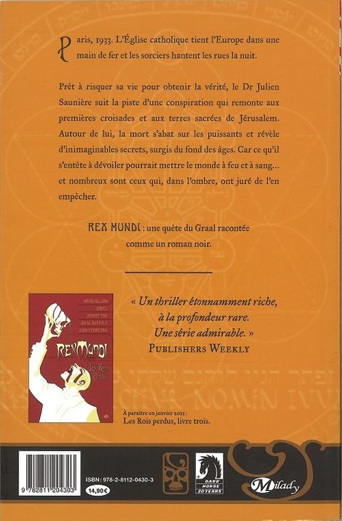 En 1933, dans une Europe féodale gouvernée par l'Église catholique, où la magie existe et où les monstres rôdent dans l'ombre, un étrange médecin parisien mène l'enquête sur une série de meurtres rituels. Sa seule chance d'empêcher le monde de basculer dans une ère de terreur et de sang : découvrir le mystère du Saint Graal. Sa seule piste : un manuscrit du Moyen Âge qui semble contenir des secrets jalousement protégés.