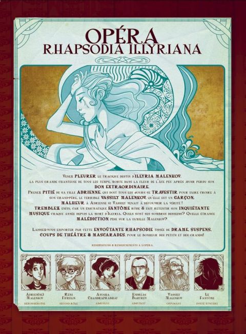 La plus grande chanteuse du monde est morte en mettant son enfant au monde. Immédiatement, la petite fille a été baptisée « Adrien » pour faire croire à son grand-père qu'elle était un garçon. Depuis lors, tous les jours, Adrienne doit se déguiser en Adrien pour maintenir l'illusion. Malheur à elle si son grand-père venait à apprendre la vérité ! Mais quel est donc cet énigmatique fantôme qui chaque année fait retentir son inquiétante musique ? Et quelle étrange malédiction pèse sur cette famille ?