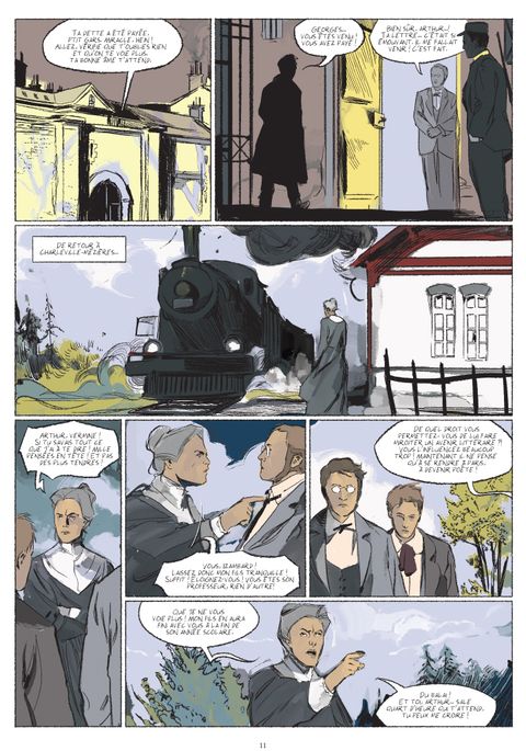 « Comme moral et comme talent, ce Rimbaud est une monstruosité. Il a la mécanique des vers comme personne, seulement ses oeuvres sont absolument inintelligibles et repoussantes. » Voici comment Arthur Rimbaud est décrit dans un rapport policier de 1873. Arthur Rimbaud est ancré dans l'imaginaire collectif, mais son histoire réelle est méconnue du grand public. Il n'a jamais connu le succès, ses poèmes ne lui ont jamais rapporté le moindre sou, et il est pourtant aujourd'hui l'un des poètes les plus connus et reconnus dans le monde. Cette bande dessinée de 120 pages prend le parti de raconter les deux vies de Rimbaud : le jeune poète arriviste, en mal de reconnaissance, qui vit une liaison sulfureuse et destructrice avec Paul Verlaine, et le trentenaire fatigué d'écrire et de vivre, qui se tue à la tâche en Afrique. J'ai souhaité dépeindre le poète tel qu'il était décrit par ses proches : tour à tour manipulateur, sans-gêne, parfois carrément grossier. Bien loin de l'image trop lisse et réductrice du jeune poète romantique... Romantique, celui qui poussa Verlaine à bout, jusqu'à ce que ce dernier craque et tire deux balles dans sa direction ?