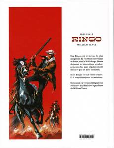 Convoyeur de fonds pour la Wells Fargo au beau milieu d'un territoire sans foi et à la loi balbutiante, Ray Ringo ne peut compter que sur sa fine gâchette. Pourtant entre les flèches des Apaches, les crocs des coyotes, les balles des malandrins ou les feux croisés du Nord et du Sud, ce ne sont pas les façons de mourir qui manquent, dans le Far-West... Et entreprendre cette chevauchée en compagnie de Ringo, c'est remonter une seconde piste tout aussi palpitante : l'évolution graphique de William Vance à travers une décennie !