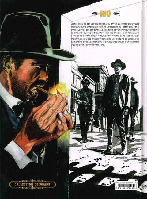 Après avoir quitté San Francisco RIO arrive, accompagné de Doc Holliday, dans la fameuse ville de Tombstone où l'attend du sang, de la sueur et des cadavres. La civilisation avance imperturbable, la modernité et la politique font leur apparition. Le célèbre Wyatt Earp et son frère Virgil y appliquent l'ordre et la justice. Bien malgré lui, RIO est entraîné dans une vile histoire de jalousie et son amitié avec Doc Holliday le pousse à se mêler d'une sombre affaire pour sauver Wyatt Earp. Sans amertume et bien malgré lui, il devra quitter la ville pour ne pas ternir l'image et la respectabilité de la police locale. En savoir plus : Ces deux épisodes inédits dont "représailles" resté inachevé suite à la mort de son créateur sont parus pour la première fois dans l'intégrale reprenant la totalité des histoires de ce héros "RIO : The Complete Saga" , édité le 19 novembre 2013 par IDW Publishing.