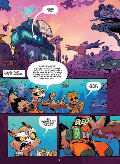 Rocket et Groot vivent leur meilleure vie en sillonnant la galaxie à la recherche des pizzas les plus délicieuses de l'univers. Mais voilà que le tandem apprend que Star-Lord a été kidnappé ! Ils demanderaient bien de l'aide à Gamora pour le libérer, mais elle semble très occupée à se battre contre Thanos ! Rocket et Groot font très certainement partie des personnages Marvel préférés du jeune public. Voici un Graphic Novel inédit et résolument tous publics qui ravira nos plus jeunes lecteurs !