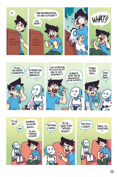 Hugo est un jeune homme de son temps, accro à Internet et aux jeux vidéo, entre deux petits boulots. Il voit sa vie soudainement bouleversée le jour où il trouve dans son salon un robot doté d'une intelligence artificielle. Baptisé Roger, celui-ci a pour principale caractéristique une incapacité totale à mentir, en plus d'une curiosité aiguisée pour le mode de vie si curieux des étranges créatures qui partagent désormais sa vie.