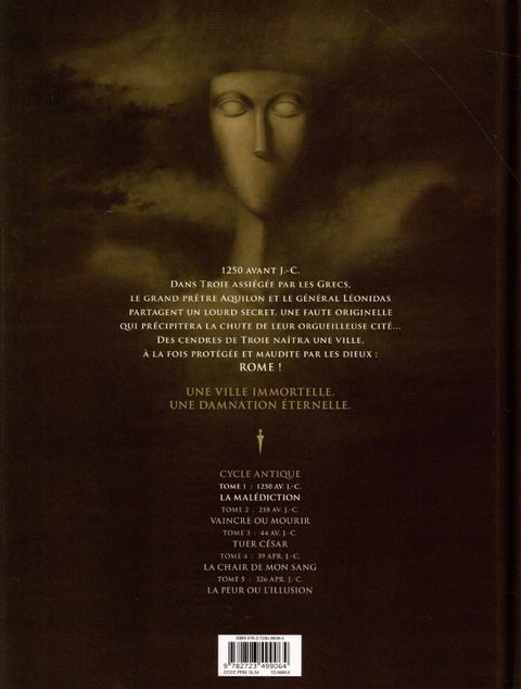 1250 av. J.-C. Alors que la guerre de Troie fait rage, deux mystérieuses jumelles arrivent aux portes de la cité fortifiée. L'une tient dans ses bras une magnifique idole d'orichalque : le Palladium. Léonidas et Aquilon, deux officiers troyens semblant dissimuler un lourd secret, sont immédiatement séduits par la beauté trouble des jumelles. Et il ne faut pas longtemps pour que chacun en épouse une, fondant ainsi deux familles : les Léos et les Aquilos. Ce que tout le monde ignore, c'est que dans le Palladium est enfermée Ker, une déesse maléfique qui, de sa prison d'orichalque, réserve une terrible malédiction aux deux familles. Une malédiction qui les poursuivra à travers les âges, accompagnant le destin de la ville mythique qu'elles s'apprêtent à fonder : Rome. Conçu à l'origine par le regretté Gilles Chaillet, Roma est un projet ambitieux visant à raconter l'éternité de Rome à travers une grande fresque historico-fantastique de 13 albums, construite autour de la malédiction du Palladium. À raison d'une parution tous les 6 mois, chaque album, formant une histoire complète et réalisé par un dessinateur différent, nous décrit en toile de fond un épisode spécifique et emblématique de l'histoire de Rome. Un contexte historique hautement mis en lumière par l'apport de Bertrand Lançon, éminent historien spécialiste de la cité éternelle, qui contribue aux dossiers pédagogiques de fin d'album.