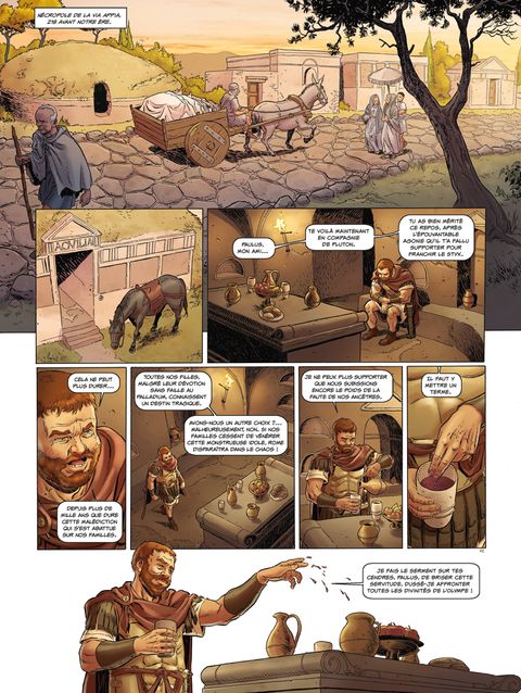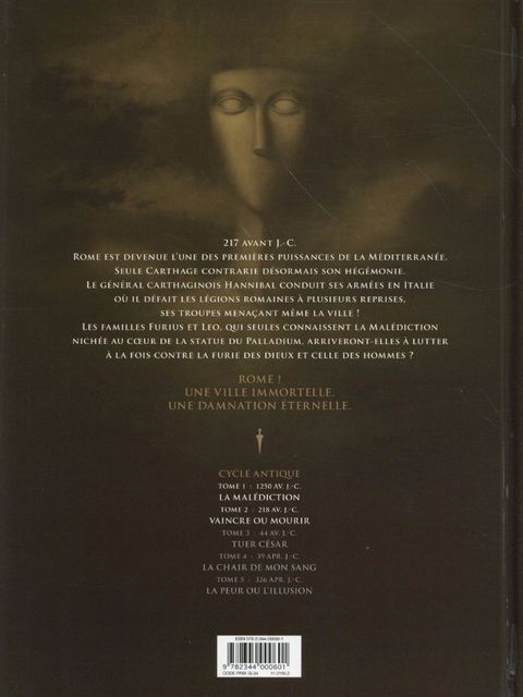 217 avant Jésus Christ. Rome est devenue l'une des premières puissances de la Méditerranée. Seule Carthage contrarie son hégémonie. Hannibal conduit ses armées en Italie où il défait les légions de la République romaine à plusieurs reprises. Furius Léo, descendant de Léonidas, espère briser la Malédiction qui accable sa famille en remettant le Palladium à Hannibal, avec la promesse que l'icône lui apporterait gloire et pouvoir éternels. Furius est prêt à tout sacrifier pour parvenir à ses fins. Il n'imagine pas que le Palladium retournera son plan contre lui, sur fond de guerres puniques et de luttes de pouvoir, dans un combat opposant les Dieux aux hommes et le Bien au Mal...À peine 6 mois après la parution du premier volume, la grande saga Roma se poursuit avec ce tome 2 formidablement mis en images par Luca Erbetta. La malédiction du Palladium se poursuit au coeur de la cité éternelle.