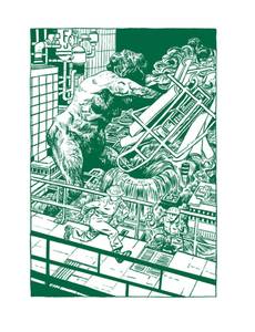 3, le livre par lequel Hugues Micol avait fait son apprentissage de la bande dessinée, s'ouvrait sur un homme avalant un poisson et s'achevait, au bout de 160 pages d'une poursuite insensée, devant l'encombrant cadavre de Poséidon. La suite, Séquelles, nous entraînait encore plus loin dans la folie d'un Tokyo factice et décalé, où les monstres se multiplaient à la façon de poupées russes. Avec Tumultes, les sirènes nymphomanes et les divinités hostiles viennent ravager un monde hésitant entre burlesque et hallucination, pour nous donner l'un des plus beaux ovnis du 9e art. Hugues Micol bouscule les mythologies et les codes graphiques, son dessin illuminé convoquant, entre divinités et gangsters, les ombres de Jack Kirby et Akira Kurosawa. Puisant sa verve hilarante dans des délires coupables et empoignant sa création à bras le corps, Micol vocifère, s'esclaffe, et éclabousse le lecteur de son talent jubilatoire. 3 était une performance graphique, superbe chorégraphie muette et improvisée. Séquelles reprenait le même motif en dotant les personnages de la parole et en offrant du sens et de l'humour à cet univers sous acide. Tumultes va plus loin et réussit la prouesse d'emboîter a posteriori chaque détail, transformant ce qui ressemblait à un délire en un récit à la logique implacable. Un coup de maître.