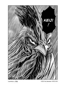Pour retrouver le kijû ayant tué sa soeur, Keiji affronte de nouveaux dangers. C'est accompagné de Piyoko et d'Elizabeth qu'il met fin aux agissements d'un villageois transformé en monstre, sans savoir que son combat a été filmé ! Pensant enfin se reposer dans une école, nos trois protagonistes vont faire la rencontre d'un coq qui semble avoir une forte rancune contre notre valeureux héros...Écrit et dessiné par Shu Sakuratani, <em>Rooster Fighter </em>est un manga qui a su conquérir le coeur des lecteurs de nombreux pays. Action, parodie et humour sont au centre de ce récit survitaminé.