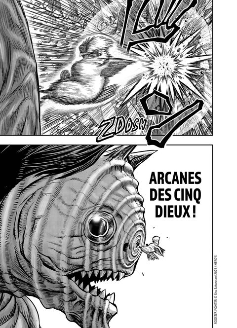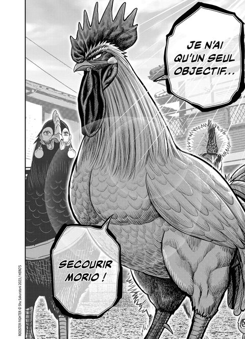 Pour obtenir justice, il se battra bec et griffes ! Cocori-K.-O. !Avec l'aide de Morio, Keiji a sauvé la ville de l'inondation. Lors de son périple, notre valeureux coq croise la route de Keisuke, son demi-frère, dont l'objectif est de sauver son père, enlevé par des <em>kijin</em>, des êtres surpuissants contrôlant les <em>kijû</em>. Prisonnier d'une usine désaffectée à Fujimori, Keiji apprend alors qu'un <em>kijû </em>sème la terreur non loin et n'est autre que Morio...Écrit et dessiné par Shu Sakuratani, <em>Rooster Fighter</em> est un manga qui a su conquérir le coeur des lecteurs de nombreux pays. Action, parodie et humour sont au centre de ce récit survitaminé.