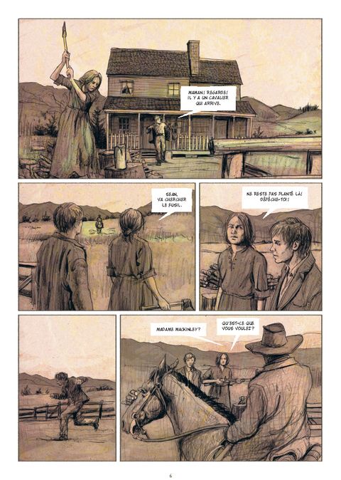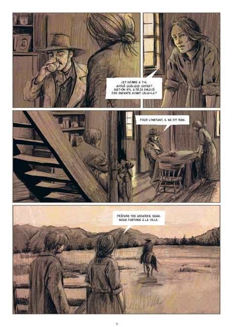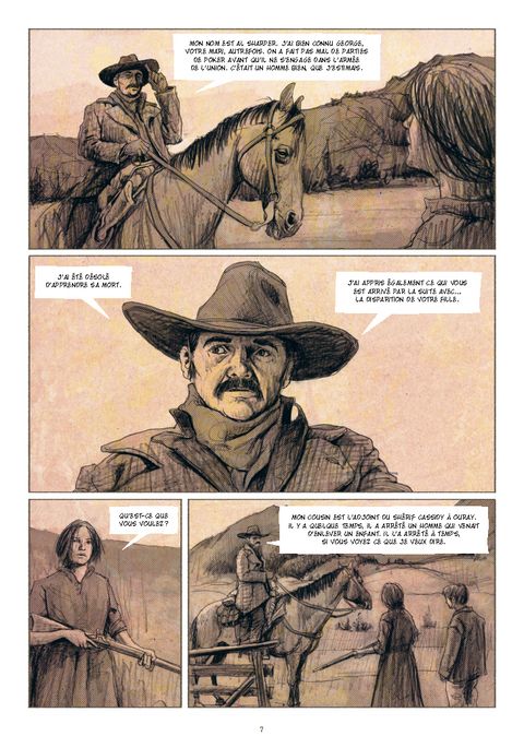 Une histoire de western à tiroirs, pleine de rebondissements et souvent de tristesse, peut être d’un peu d’espoir, un dessin en crayonné/fusain qui colle à l’atmosphère et qui intensifie l’environnement et les personnages hostiles de cette belle histoire.