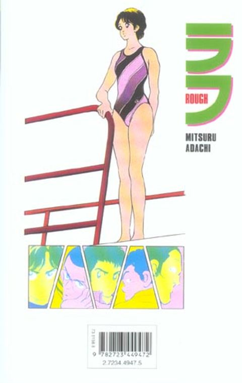 Le lycéen Eisen réunit la fine fleur des sportifs de haut niveau. Parmi eux, Ami Ninomiya, championne de plongeon, a le c ur qui balance entre Hiroki Nakanishi, recordman de nage libre, et Keisuke Yamato, champion de natation. Malheureusement, les familles Yamato et Ninomiya se détestent cordialement, suite à un différent majeur. Ami est pourtant bien décidée à continuer à fréquenter Keisuke, malgré le danger Rough, c'est un peu Roméo et Juliette au club de natation. À travers l'idylle impossible entre Keisuke Yamato et Ami Ninomiya, Adachi accouche d'un de ses merveilleux drames sentimentaux dont il a le secret, tout en retenue et en pudeur. Cette série est peut-être la plus appréciée des fans du mangaka, car Adachi est parvenu à y déployer tout son art et son talent, faisant de cette uvre une réussite intégrale. Graphiquement, narrativement, émotionnellement, Rough atteint des sommets. Avec Touch, prévu dans le courant de l'année 2005, cette série était la plus attendue des fans de Mitsuru Adachi. Les éditions Glénat la proposeront dès le mois de novembre dans une édition poche en douze volumes, à paraître en bimestriel.