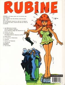 Toujours aussi chic, mais encore plus choc, la pulpeuse et impétueuse femme-flic de Chicago est chargée de résoudre une nouvelle affaire pleine de fausses vérités et de vrais faux-semblants... Gale Jarvis a essayé de tout oublier de son bonheur passé : son rang, sa fortune, son mari et même ses filles qu'elle adore. Elle a surtout tenté de chasser de son esprit le cadavre de Ryan Smith, l'homme qu'elle a abattu voici plus douze ans au Montana. Condamnée à la peine de mort pour ce meurtre, elle a miraculeusement échappé à cette sentence. L'avion qui l'emmenait au pénitencier s'est en effet crashé en montagnes et elle est la seule à avoir pu s'en extraire avant qu'il ne s'enfonce dans les eaux glacées d'un lac. Devenue hors-la-loi, Gale est presque arrivée à se débarrasser de ses souvenirs et de ses remords. Mais un soir, alors qu'elle regarde tranquillement la télévision, voici que la victime de son crime apparaît sur son petit écran parmi les acteurs involontaires d'une émission de vidéo-gags ! Est-elle confrontée à une ressemblance hallucinante ? Pour elle, cela ne fait bientôt aucun doute : Ryan Smith est toujours vivant. Dès lors, qui a-t-elle assassiné ? A-t-elle d'ailleurs réellement tué quelqu'un ? Il incombe maintenant à Rubine de répondre à ces questions...