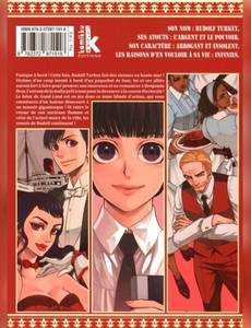 Rudolf Turkey est parfait et tout lui réussi. Fumeur de cigares, séducteur et maire actuel de la ville de Gond Land... Mais derrière cette facade, il y a peut-être autre chose... La villle de Gond Land, située en plein désert nous rappelle sans l'ombre d'un doute Las Vegas. L'argent c'est le pouvoir, et les casinos poussent comme des champignons. Et notre cher Rudolf à quand même le don pour se retrouver dans des situations souvents douteuses : - Prendre des paris sur le braquage d'une banque. - Se battre avec la mafia locale pour obtenir le controle d'un club de danseuses. Mais pas de souci : avec l'aide de ses deux magnifiques secrétaires, il se sort toujours de ces situations avec humour et classe ! Panique à bord ! Cette fois, Rudolf Turkey fait des siennes en haute mer ! Victime d'un coup monté à bord d'un paquebot de luxe, lui et ses alliés auront fort à faire pour prouver son innocence et en remontrer à Benjamin Bear, l'ourson de la mafia prêt à tout pour le devancer à la course électorale ! Le futur de Gond Land est en jeu dans ce tome blindé d'action, qui vous emmènera d'un bateau démesuré à un manoir gigantesque ! Et entre le retour de son ancienne flamme et celui de l'actuel maire de la ville, les ennuis de Rudolf continuent !