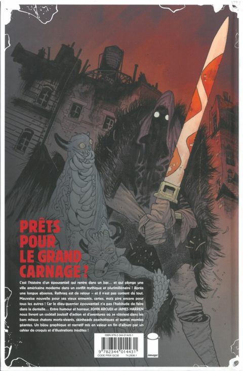 Ok, par où commencer ? C’est l’histoire d’un épouvantail qui rentre dans un bar... et qui plonge une ville américaine moderne dans un conflit mythique et plurimillénaire ! Après une longue absence, Rathraq est de retour – et il n’est pas content du tout. Mauvaise nouvelle pour ses vieux ennemis, certes, mais pire encore pour tous les autres ! Car le dieu-guerrier épouvantail n’a pas l’habitude de faire dans la dentelle... Entre humour et horreur, John Arcudi (B.R.P.D., The Mask) et James Harren (Conan The Barbarian) nous livrent un cocktail jouissif d’action et d’aventure où se côtoient dans les bars miteux chatons morts-vivants, skinheads psychotiques et autres momies géantes. Rumble, c’est Preacher qui rencontrerait Hellboy dans les rues de Sin City... bref, le comics dans toute sa splendeur ! Un véritable bijou graphique et narratif mis en valeur en fin d’album par un cahier de croquis et d’illustrations inédites !