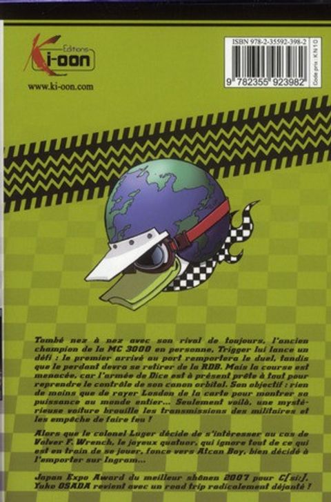 Tombé nez à nez avec son rival de toujours, l’ancien champion de la MC 3000 en personne, Trigger lui lance un défi : le premier arrivé au port remportera le duel, tandis que le perdant devra se retirer de la RDB. Mais la course est menacée, car l’armée de Dice est à présent prête à tout pour reprendre le contrôle de son canon orbital. Son objectif : rien de moins que de rayer Losdon de la carte pour montrer sa puissance au monde entier… Seulement voilà, une mystérieuse voiture brouille les transmissions des militaires et les empêche de faire feu ! Alors que le colonel Luger décide de s’intéresser au cas de Volver F. Wrench, le joyeux quatuor, qui ignore tout de ce qui est en train de se jouer, fonce vers Atcan Bay, bien décidé à l’emporter sur Ingram…