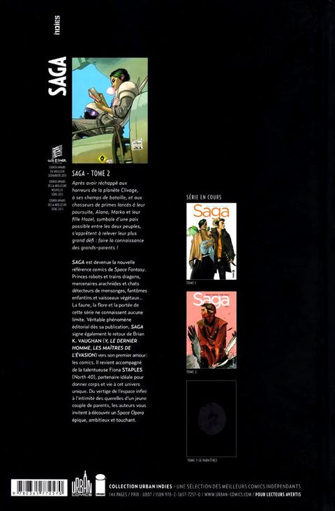 Encore une fois, un tome d’une grande qualité ! Le seul défaut, c’est que le tome se lit trop vite. Le scénario ne faiblit pas même après 12 issues, chaque thème avance à son rythme et n’est pas forcé. Saga est l’alliance parfaite d’un récit mature et fantastique avec une romance spatiale. Coup de (...) Voir le commentaire