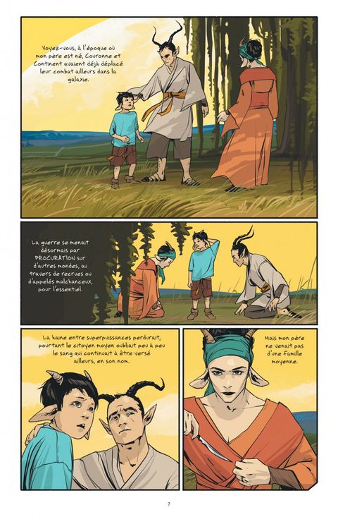 Princes robots et trains dragons, mercenaires arachnides et chats détecteurs de mensonges, fantômes enfantins et vaisseaux végétaux. La diversité de la faune, de la flore et la richesse des thèmes abordés ont rapidement fait de saga la nouvelle référence comics de space fantasy. Du vertige de l'espace infini à l'intimité des querelles d'un jeune couple de parents, les auteurs vous invitent à découvrir un space opera épique, ambitieux et touchant. (contient les épisodes #7-12)