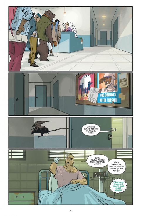 Suite des aventures de Marko et Alana. Une grande partie du tome se situe pendant le tome 2 et nous complète l’ellipse de fin de tome. On en apprend plus sur Alana et sur Gwendolyn. Traques par un robot , un indépendant , une ex, des journalistes , Marko Alana et Hazel s’en (...) Voir le commentaire
