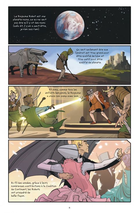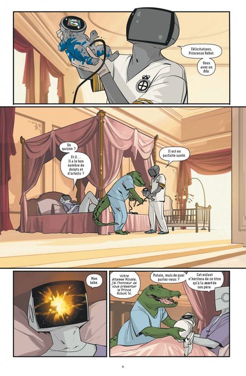 Récemment récompensés par les Eisner Awards du Meilleur Scénariste et de la Meilleure Dessinatrice 2014, Brian K. VAUGHAN et Fiona STAPLES débutent le deuxième chapitre de leur série, récompensée par l’Eisner Award de la Meilleure Série 2014. La série connaît également un grand succès en France avec plus de 15 000 exemplaires vendus du premier tome ! Arrivés depuis plusieurs mois sur la planète Gardenia, Alana, Marko, leur fille Hazel et Klara, la mère de Marko, ont commencé une nouvelle vie. Marko s’occupe de l’éducation d’Hazel tandis qu’Alana semble promise à une brillante carrière de comédienne au sein du Circuit, le divertissement le plus populaire de la galaxie… pour peu qu’elle tempère ses sautes d’humeur. Ailleurs, sur Continent, la Princesse Robot met au monde l’héritier du Robot Prince IV.