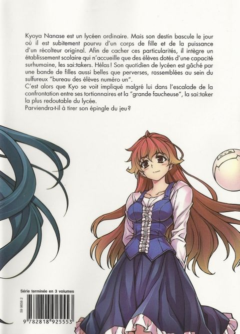 Kyoya Nanase est un lycéen ordinaire. Mais son destin bascule le jour où il est subitement pourvu d'un corps de fille et de la puissance d'un récolteur original. Afin de cacher ces particularités, il intègre un établissement scolaire qui n'accueille que des élèves dotés d'une capacité surhumaine, les sai:takers. Hélas, son quotidien de lycéen est gâché par une bande de filles aussi belles que perverses, rassemblées au sein du sulfureux «bureau des élèves numéro un». C'est alors que Kyo se voit impliqué malgré lui dans la confrontation entre ses tortionnaires et la «grande faucheuse», la sai:taker la plus redoutable du lycée. Parviendra-t-il à tirer son épingle du jeu ?