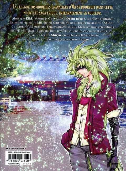 Kiki, le nouveau Chevalier d'Or du Bélier, doit combattre son ancien maître Mu et Shion se joint à la bataille ! Ce ne sont donc pas deux mais trois générations de Béliers qui s'affrontent. La lutte promet d'être aussi éthérée que brutale... car l'enjeu est immense. Pendant ce temps, Shiryu fait route vers le Sanctuaire. En chemin, il tombe sur son vénéré maître, Dohko...