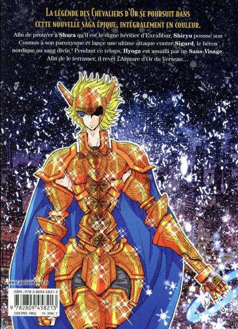 Décidé à prouver à Shura sa valeur en tant qu'héritier de l'épée sacrée Excalibur, Shiryu pousse son cosmos jusqu'à son paroxysme, et lance une frappe dévastatrice avec laquelle il tente de terrasser pour de bon le légendaire Sigurd au sang partiellement divin. Pendant ce temps, Hyoga est à son tour attaqué par un «Sans-visage». Afin de le combattre, il revêt l'armure d'or du verseau...