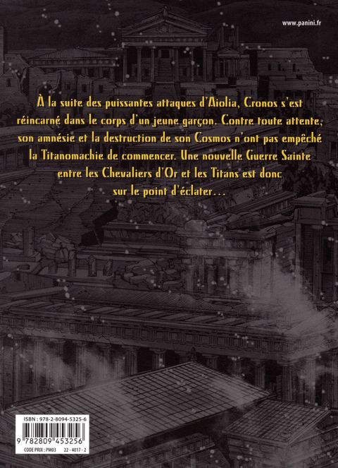 Cronos, le roi des Dieux, semble avoir perdu la mémoire et son cosmos après la destruction des sceaux de Zeus. Furieux, les Titans attaquent Aiolia et Shura qui vacillent. Mais, alors que tout semble perdu, le cri d'Aldébaran, le puissant chevalier d'or du Taureau, retentit...