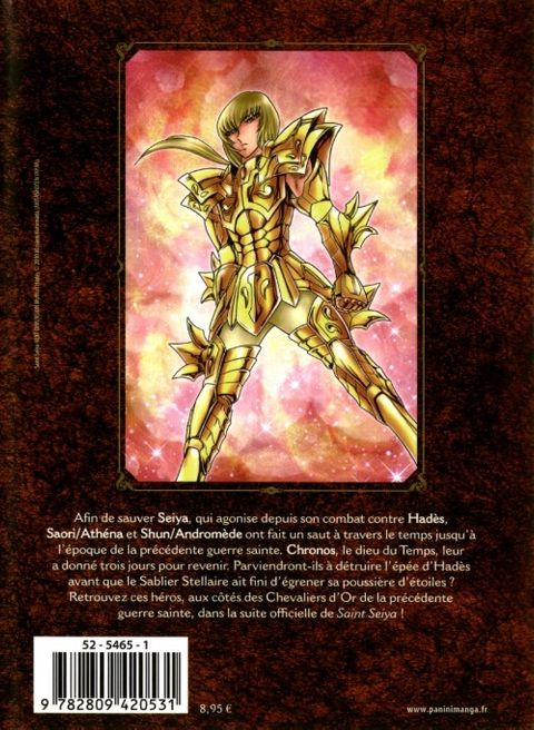 Saori/Athéna et Shun/Andromède ont réussi à convaincre Chronos de les renvoyer plus de deux siècles en arrière, à l'époque de la précédente guerre Sainte. Les Chevaliers d'Or y attendent, avec une angoisse impatiente, l'apparition de leur déesse. Hélas, la pression qui règne dans le portail spatio-temporel est si intense que nos deux héros sont séparés en cours de route. Ce n'est que la première d'une série de désagréables surprises...