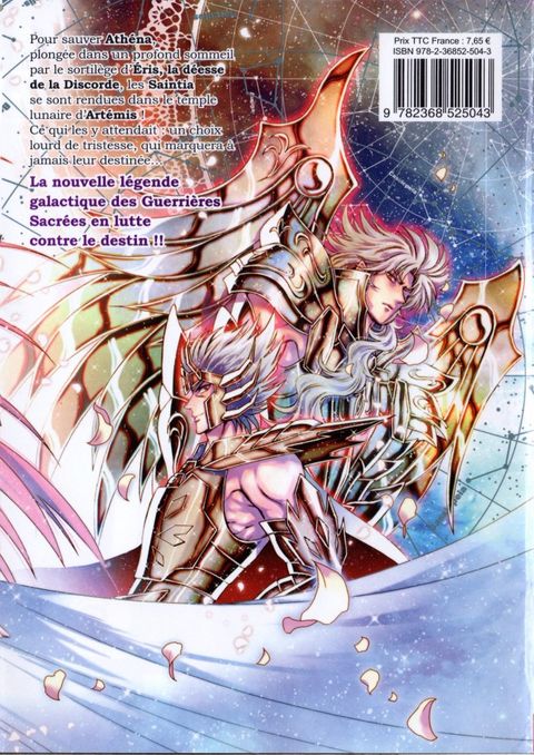 Pour sauver Saori Athéna, plongée dans un profond sommeil par le sortilège d'Éris, la déesse de la Discorde, les Saintia se sont rendus dans le temple lunaire d'Artémis ! Ce qui les y attendait : un choix lourd de tristesse, qui marquera à jamais leur destinée... La nouvelle légende galactique des Guerrières Sacrées en guerre contre le destin !!