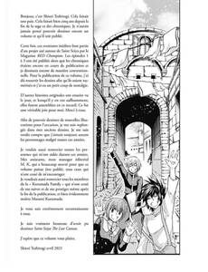 Plongez au cœur de la nouvelle aventure des Chevaliers du Zodiaque ! La dernière et l'avant-dernière guerre sainte mais aussi ce qu'il s'est passé après la fin de la guerre... Des récits absents de la saga originale ou des Chroniques sont rassemblés dans ce volume. Une nouvelle occasion de retrouver des personnages emblématiques comme Tenma, Alone, Sasha mais aussi les Chevaliers d'Or !!