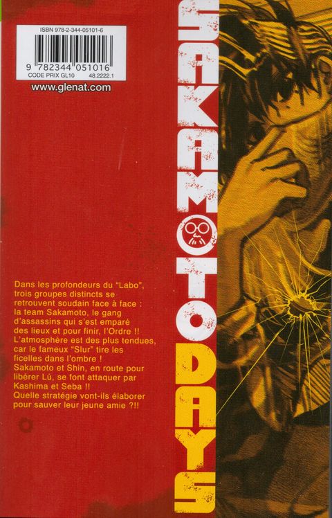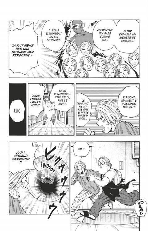 Votre épicier est un assassin légendaireDans les profondeurs du “Labo”, trois groupes distincts se retrouvent soudain face à face : la team Sakamoto, le gang d’assassins qui s’est emparé des lieux et pour finir, l’Ordre !! L’atmosphère est des plus tendue, car le fameux “Slur” tire les ficelles dans l’ombre !Sakamoto et Shin, en route pour libérer Lú, se font attaquer par Kashima et Seba !!Quelle stratégie vont-ils élaborer pour sauver leur jeune amie ?!!
