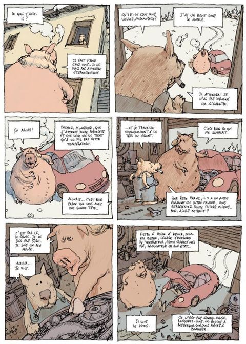 Une histoire savoureuse, truculente et généreuse, menée comme une mécanique de précision Salvatore est un chien. Salvatore est garagiste. Et un bon ! Il est réputé dans toute la région. Un de ceux qui élève la mécanique au rang d'Art ! Pourtant, Salvatore s'est installé là-haut dans la montagne, à l'écart du bruit et des gens. Il ne les aime pas beaucoup, les gens. Ceux qui le bousculent quand il déguste sa fondue, ceux qui l'empêchent de savourer sa cigarette et son journal, après le repas. Alors il les fait attendre sans vergogne. Et parfois même, dérobe une pièce des moteurs qu'on lui confie ! Mais alors, Salvatore ne serait-il qu'une ordure ? Pas si vite. Comme un rouage bien huilé, il a conçu un plan diabolique pour retrouver celle qu'il aime, tout en poils brillants et sourire tendre : Julie. Et personne ne pourra le détourner de ce chemin, personne.