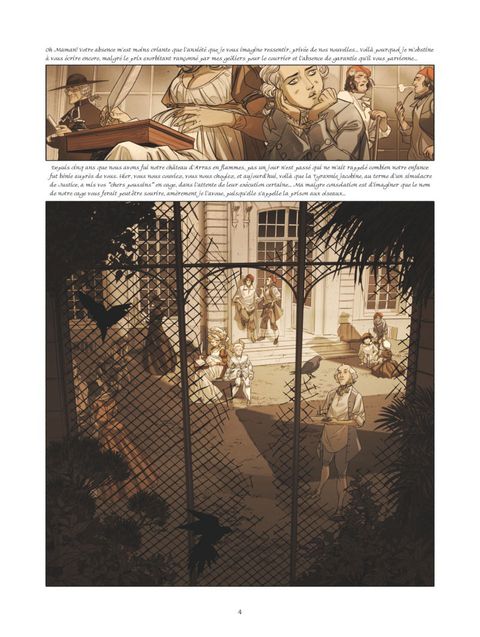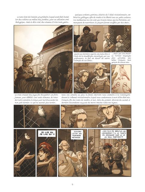 1794. Voilà 5 ans que la famille De Sambre ont été chassés de leur propriété et déchus de leurs titres de noblesse. À la recherche de sa demi-soeur Josepha qui a désormais embrassé les idées révolutionnaires, Maxime s'est enfui, laissant derrière lui son nom, son passé et sa famille. Il a abandonné Louise, enceinte, et les jumeaux à la merci des tyrans jacobins. Capturés, piégés dans leur « prison aux oiseaux », ils sont maintenant en attente de leur exécution certaine. Avec eux s'éteindra la lignée aristocratique De Sambre. Sans eux débutera le destin non moins tragique de la lignée roturière Sambre...Yslaire et Marc-Antoine Boidin concluent en beauté l'ultime trilogie consacrée à la malédiction de la famille Sambre en pleine Révolution française. Découvrez bientôt toutes les réponses aux mystères qui entourent cette passionnante saga familiale, à la dimension tragique et littéraire.