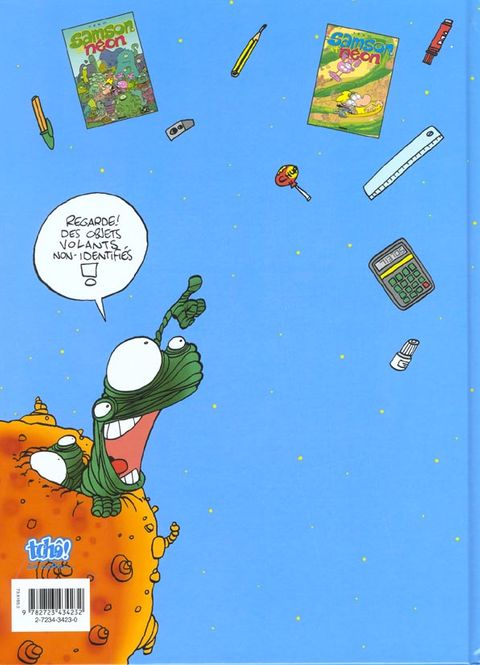 Néon est un extra-terrestre. Mais de quelle planète vient-il ? Il n'est pas vert, ce n'est donc pas un Martien ; il n'a pas d'écailles, ce n'est donc pas un habitant de Béta 3 ; il n'a pas de tentacules non plus, ce n'est donc pas un Zorgbalien... Mais, finalement, quelle importance ? Néon n'est pas d'ici, un point c'est tout ! Samson, lui, est un petit garçon bien de chez nous. Il aime s'amuser, manger des bonbons et embêter les filles. Alors, pas étonnant que ces deux-là s'entendent comme deux frères ! Néon a trouvé sur Terre l'hospitalité et les pizzas surgelées qui font défaut sur sa planète. Et pour Samson, c'est « trop la classe » d'aller à l'école en soucoupe volante et de désintégrer le prof de maths avec un Velcrolaser !