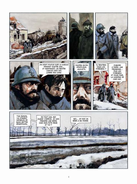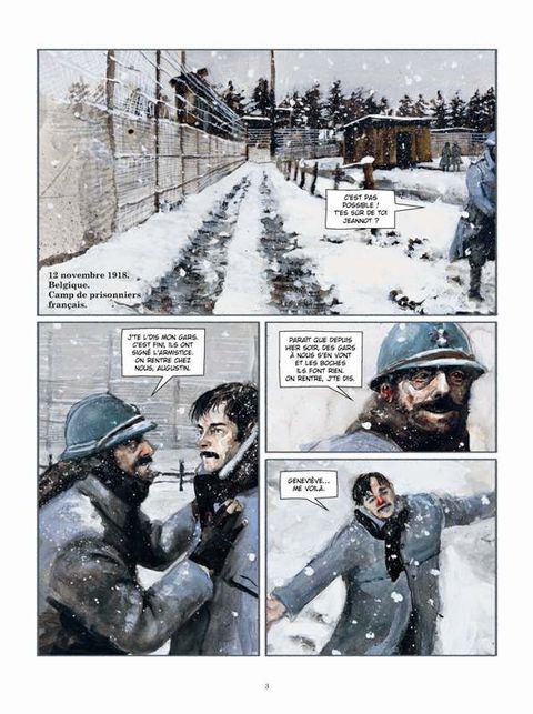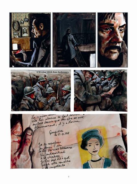 Lorsque l'armistice est signé, le 11 novembre 1918, Augustin Dortet s'étonne d'être encore en vie. Mille fois il a cru mourir dans les tranchées de la Grande Guerre, après avoir vu et vécu mille horreurs. Persuadé de ne devoir sa survie qu'au courrier enflammé que lui a adressé sa femme Geneviève au cours de la dernière année du conflit - les lettres d'amour qu'on appelait les « valentines » et qui contribuaient tant à soutenir le moral des soldats -, il n'a plus qu'une idée en tête : la rejoindre dans leurs Pyrénées natales. Et, espère-t-il, mettre en route un bébé, manière de compenser la cruelle perte d'enfant qu'ils ont subi un peu avant le début de la guerre, en 1913. Mais lorsqu'il revient au village, Augustin voit brutalement son monde basculer : rien n'est conforme à ce qu'il avait imaginé, à commencer par l'origine de ces valentines qui l'ont tant réconforté. Brillants interprètes de l'intime et des secrets enfouis, Christian De Metter et Catel avaient marqué les esprits en 2004 avec cette histoire tragique et forte, récompensée au Festival d'Angoulême par le Prix du Public. Dix ans après, à l'occasion du centenaire de la Grande Guerre, Le Sang des Valentines reparait dans une nouvelle édition, enrichie d'une postface de l'historien Jean-Pierre Verney (co-auteur de Putain de guerre ! avec Tardi) sur l'importance majeure du courrier et des échanges postaux tout au long de la Première Guerre mondiale.