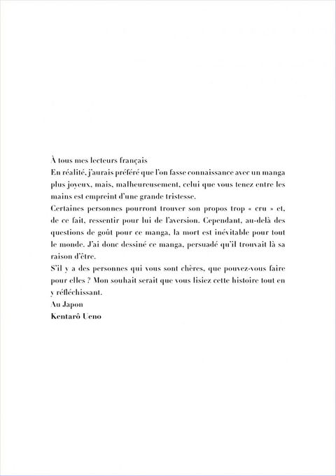 Kentarô Inoue est mangaka. Il habite, avec sa femme et sa fille de 10 ans, dans une petite maison qui lui sert aussi d'atelier. C'est une famille heureuse. Jusqu'au jour où, alors qu'il s'apprête à se coucher, il la retrouve allongée face contre sol, inerte. « Sans même nous dire au revoir » raconte ce qui s'est passé ensuite dans la vie de l'auteur jusqu'à aujourd'hui.
