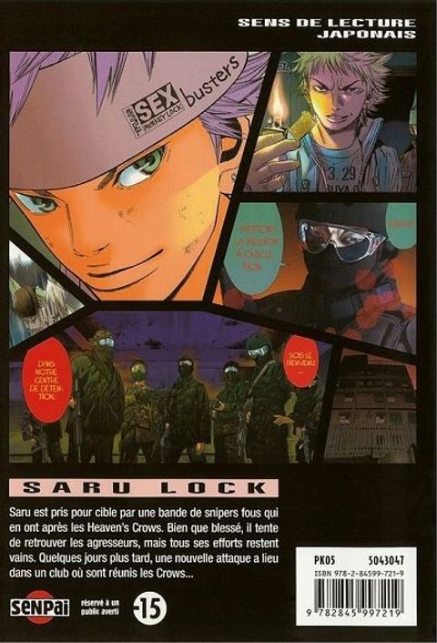 Dans ce volume, des collégiens décident de s'en prendre aux Heaven's Crows. Shibuya se transforme en terrain de Paintball géant. Les balles sifflent, et Saitô et Saru sont aux premières loges ! Notre serrurier arrivera-t-il à mettre les snipers sous clé oe