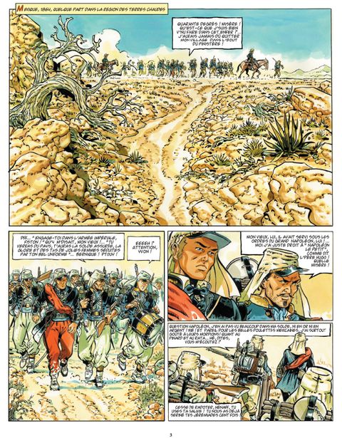 Juillet 1864, dans l'immensité aride et caniculaire du désert mexicain, des troupes françaises progressent péniblement. Elles font partie du corps expéditionnaire envoyé par les puissances européennes - dont la France de Napoléon III - pour se tailler un empire en Amérique, en profitant de la faiblesse de l'État mexicain. Parmi les soldats, souvent des hommes de sac et de corde et de peu d'éducation entrés dans l'armée impériale pour la solde qu'elle procure, un jeune lieutenant, Félix Sauvage, tranche par sa prestance et son air farouche. Lui n'est pas devenu militaire au Mexique pour l'argent, mais pour venger une tragédie familiale. Et l'homme dont il cherche à retrouver la trace se trouve quelque part, comme lui, au sein de cette armée. Sur la piste, les Français sont témoins de l'attaque de la malle poste de Chihuahua par des soudards mexicains et interviennent juste à temps pour sauver du massacre un journaliste américain en reportage et une séduisante jeune femme blonde, si intrépide qu'elle se lance seule à la poursuite de ses assaillants en fuite...