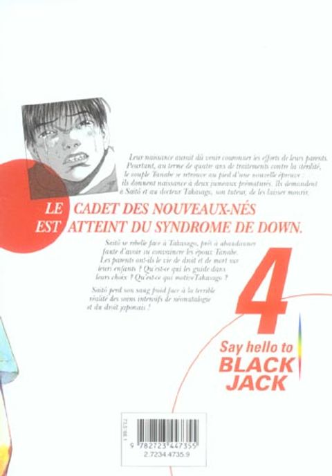 Manga phénomène au Japon, «""Say Hello to Black Jack ""» narre le parcours agité d'un jeune interne nouvellement admis dans l'un des hôpitaux les plus prestigieux du pays. Pétri d'idéaux et animé par une inébranlable foi en l'humanité, il va pourtant découvrir l'envers du décor : conditions de travail éprouvantes, salaires de misère, cynisme de la hiérarchie à l'égard des vies mises entre ses mains ""Shuho Sato ""a créé l'événement avec cette uvre forte qui épingle les carences du système hospitalier japonais. Suivi par plusieurs millions de lecteurs au Japon, « ""Say Hello to """"Black Jack ""» a été adapté en une série télévisée au succès tout aussi retentissant. Surtout, le manga a incité le gouvernement à prendre des mesures concrètes en faveur des hôpitaux, notamment dans le versement de salaires plus dignes. Son édition française connaîtra-t-elle la même odeur de soufre ? Gageons, en tous cas, qu'elle rencontre le même succès public !\\0