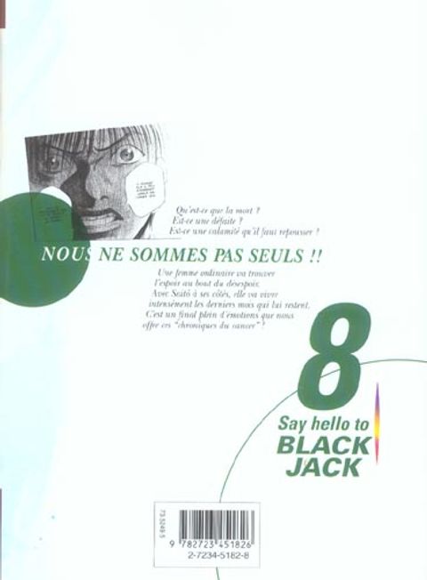 Manga phénomène au Japon, «""Say Hello to Black Jack ""» narre le parcours agité d'un jeune interne nouvellement admis dans l'un des hôpitaux les plus prestigieux du pays. Pétri d'idéaux et animé par une inébranlable foi en l'humanité, il va pourtant découvrir l'envers du décor : conditions de travail éprouvantes, salaires de misère, cynisme de la hiérarchie à l'égard des vies mises entre ses mains ""Shuho Sato ""a créé l'événement avec cette uvre forte qui épingle les carences du système hospitalier japonais. Suivi par plusieurs millions de lecteurs au Japon, « ""Say Hello to """"Black Jack ""» a été adapté en une série télévisée au succès tout aussi retentissant. Surtout, le manga a incité le gouvernement à prendre des mesures concrètes en faveur des hôpitaux, notamment dans le versement de salaires plus dignes. Son édition française connaîtra-t-elle la même odeur de soufre ? Gageons, en tous cas, qu'elle rencontre le même succès public !\\0